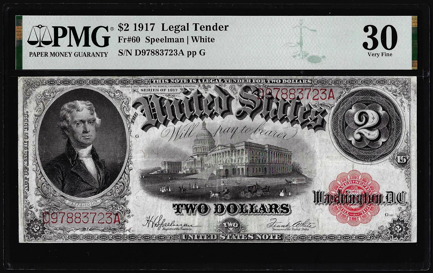 One 1917 $2 Legal Tender Note Fr.60 Very Fine 30.