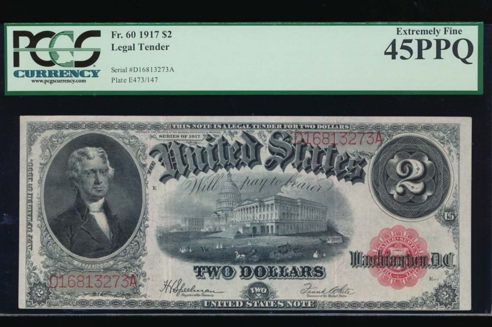 One 1917 $2 Legal Tender Note PCGS 45PPQ.