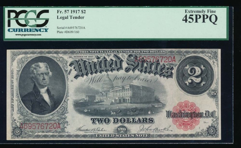 One 1917 $2 Legal Tender Note PCGS 45PPQ.
