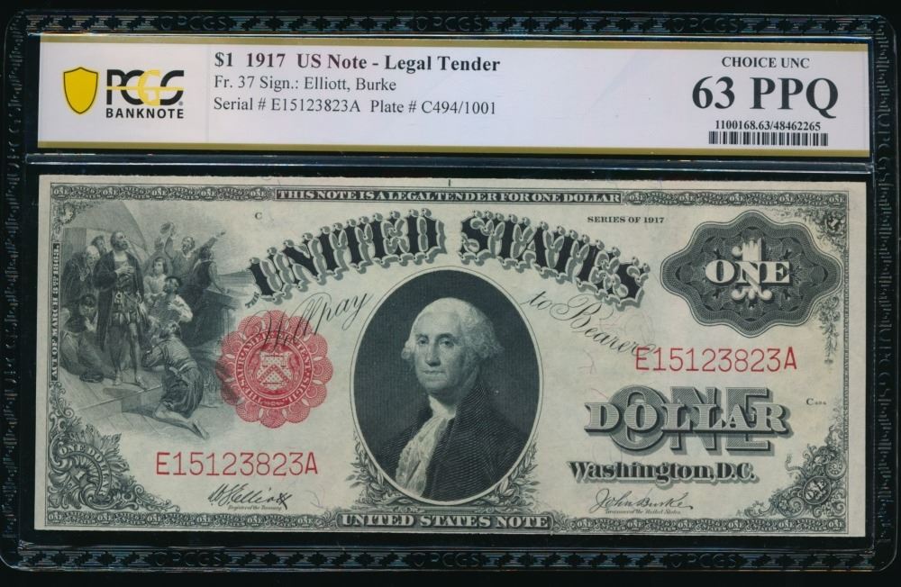 One 1917 $2 Legal Tender Note PCGS 63PPQ.
