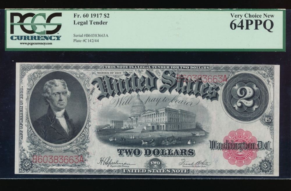 One 1917 $2 Legal Tender Note PCGS 64PPQ.