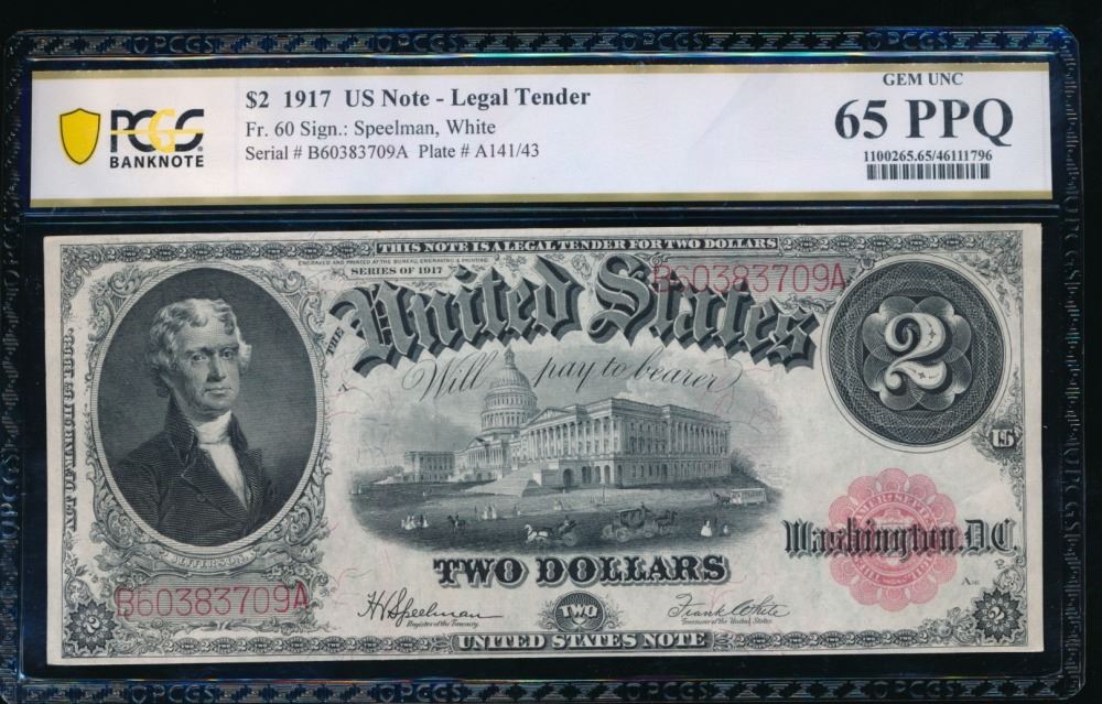 One 1917 $2 Legal Tender Note PCGS 65PPQ.