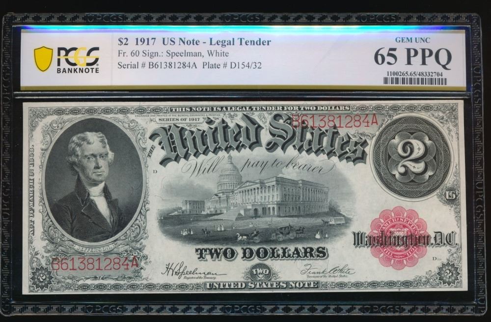 One 1917 $2 Legal Tender Note PCGS 65PPQ.