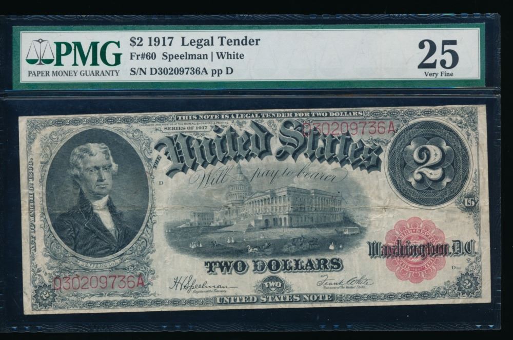 One 1917 $2 Legal Tender Note PMG 25.