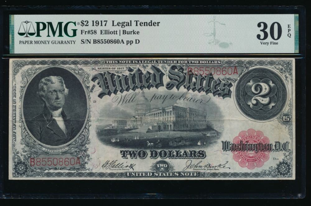 One 1917 $2 Legal Tender Note PMG 30EPQ.