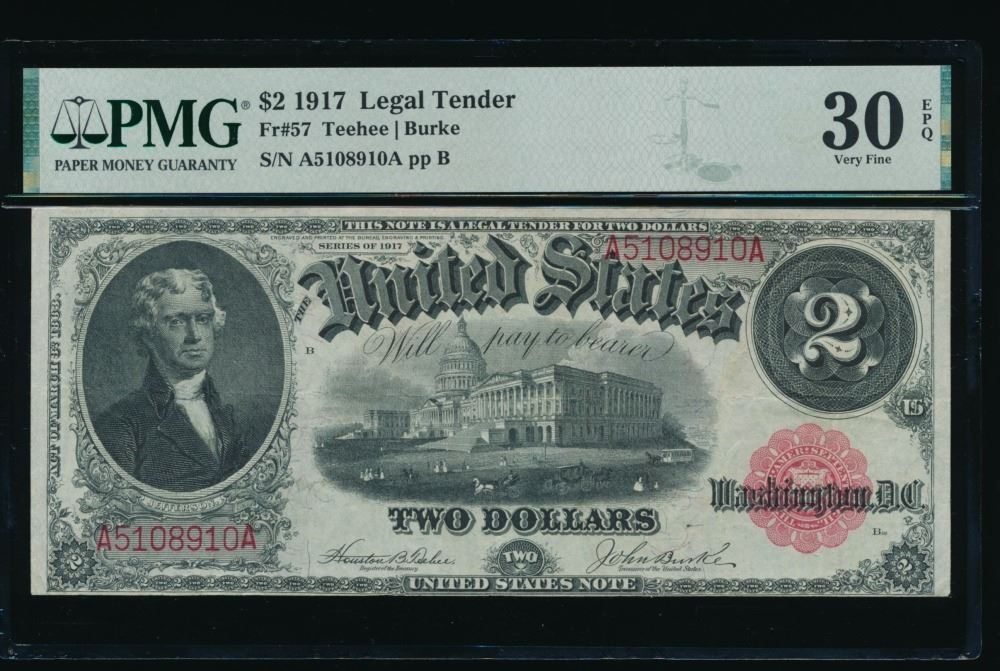 One 1917 $2 Legal Tender Note PMG 30EPQ.