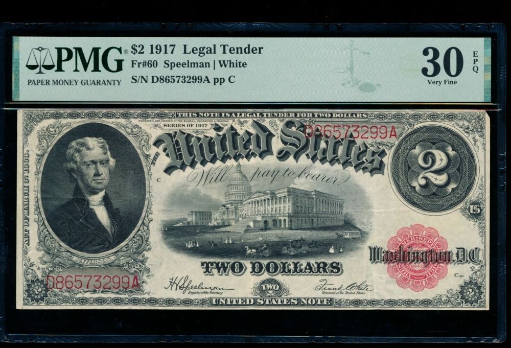 One 1917 $2 Legal Tender Note PMG 30EPQ.