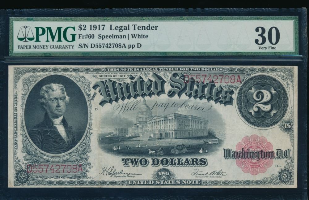 One 1917 $2 Legal Tender Note PMG 30.