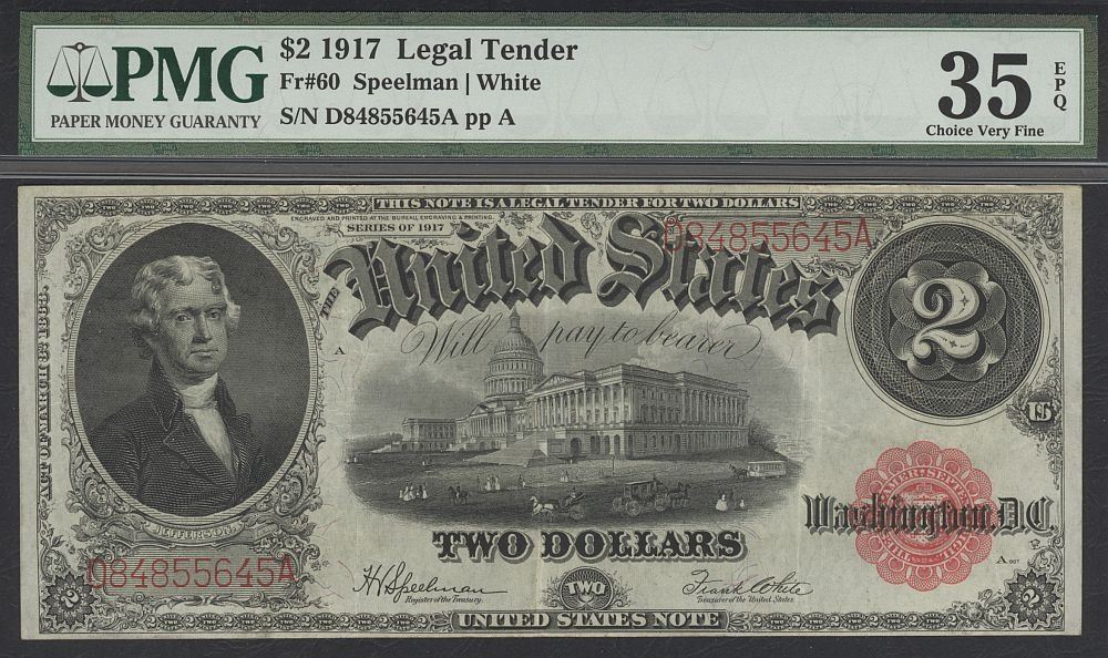 One 1917 $2 Legal Tender Note PMG 35EPQ.