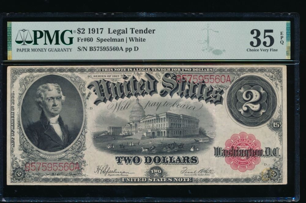 One 1917 $2 Legal Tender Note PMG 35EPQ.