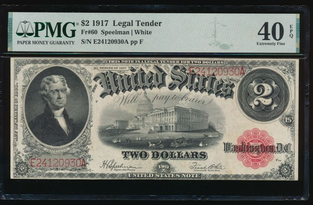 One 1917 $2 Legal Tender Note PMG 40EPQ.