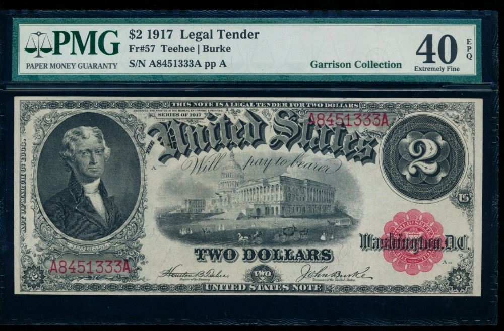 One 1917 $2 Legal Tender Note PMG 40EPQ.