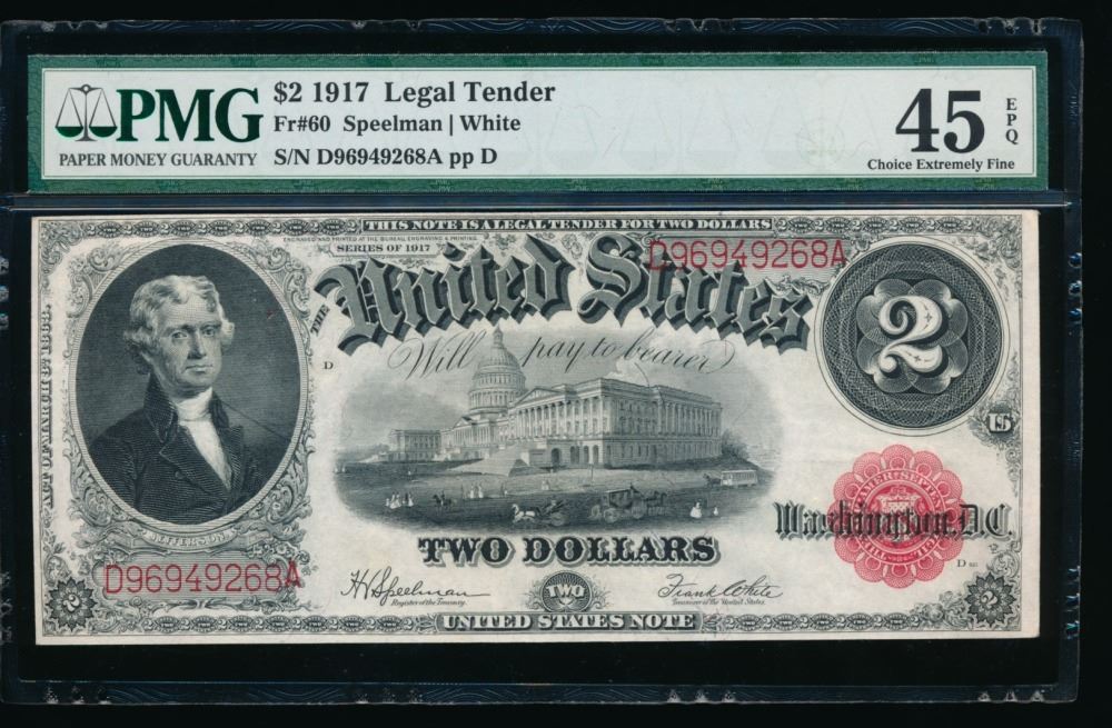 One 1917 $2 Legal Tender Note PMG 45EPQ.
