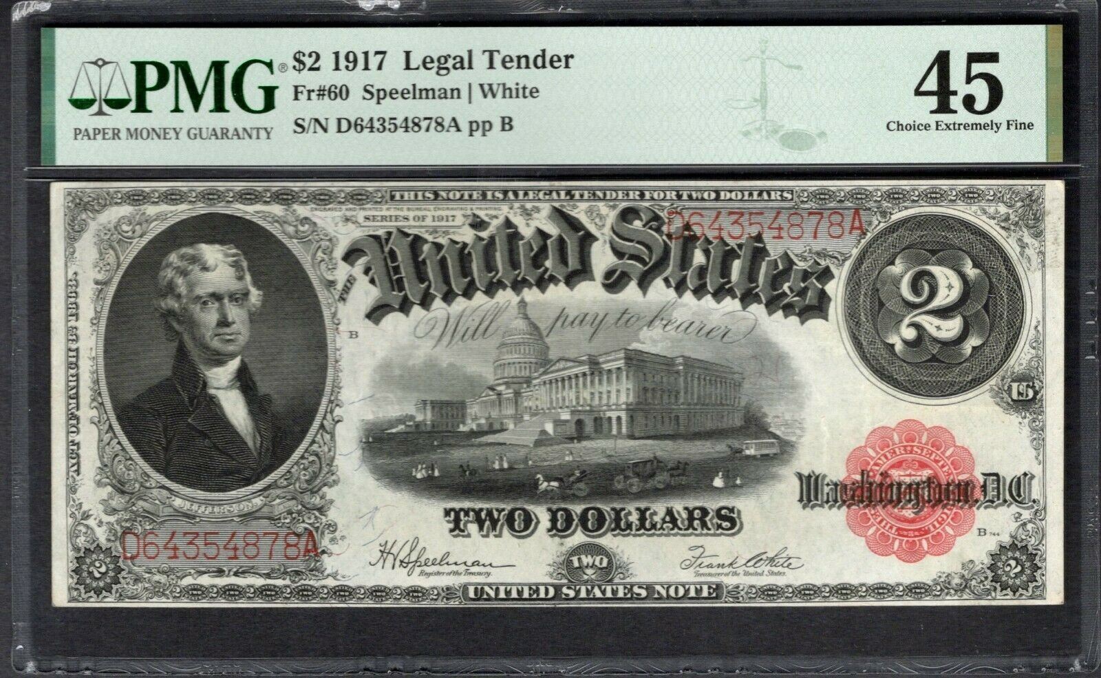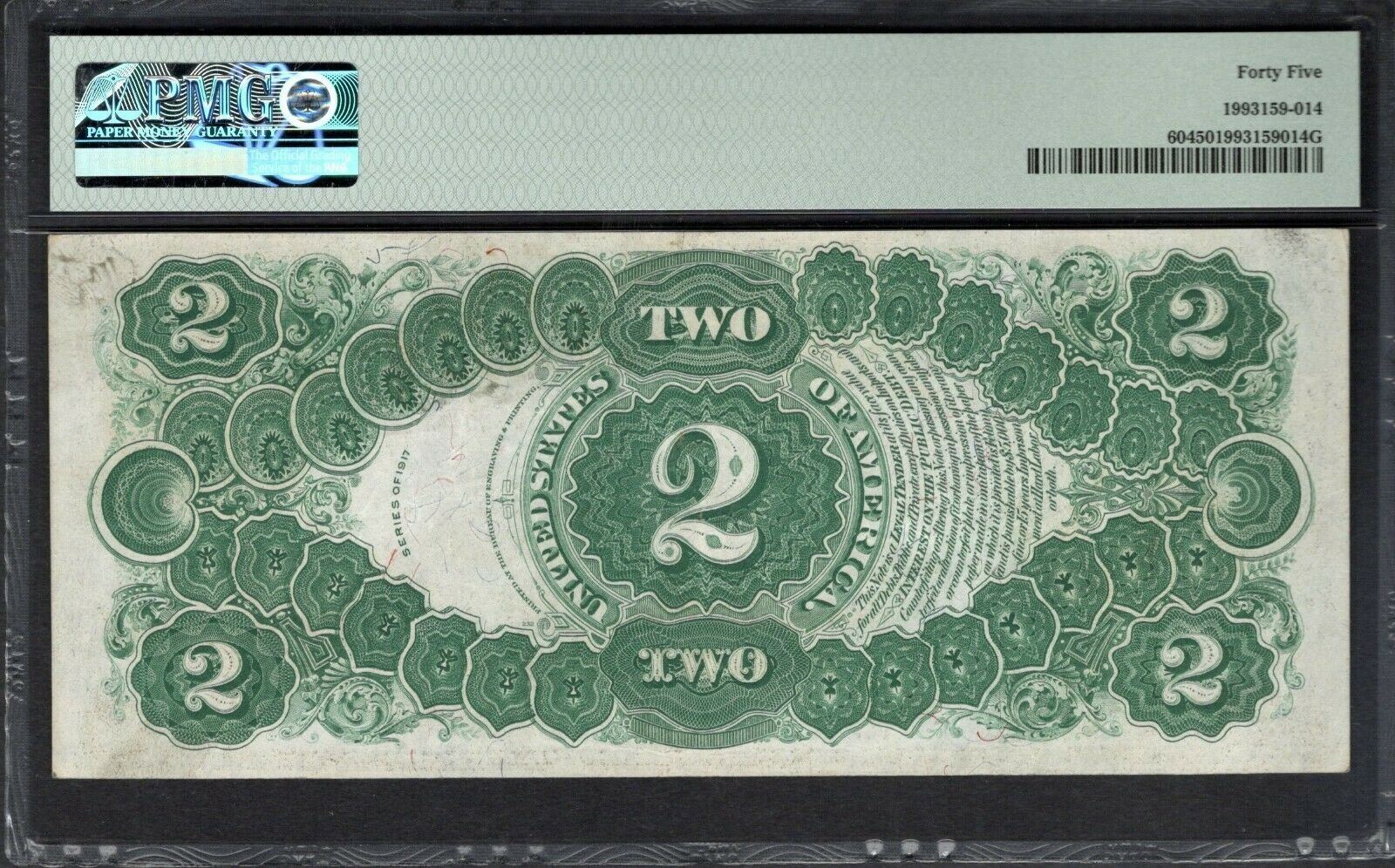 One 1917 $2 Legal Tender Note PMG 45.