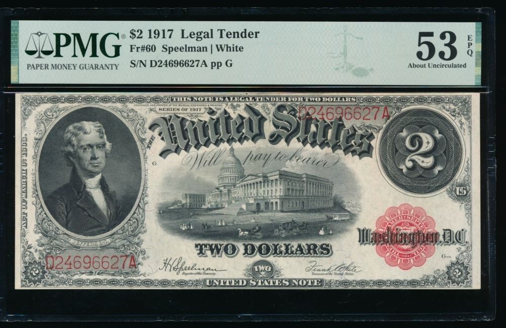 One 1917 $2 Legal Tender Note PMG 53EPQ.