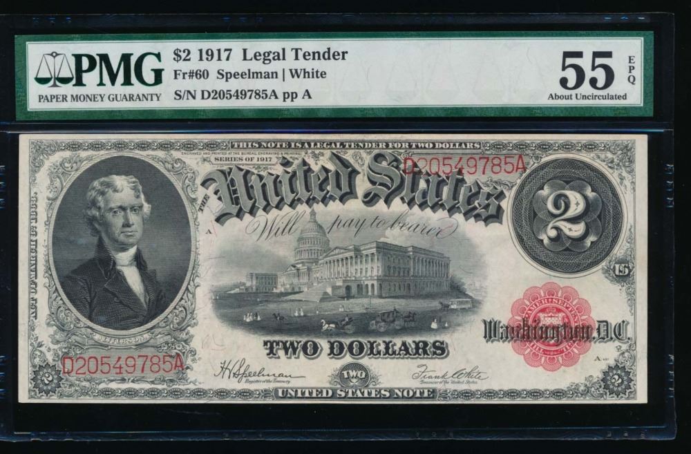 One 1917 $2 Legal Tender Note PMG 55EPQ.