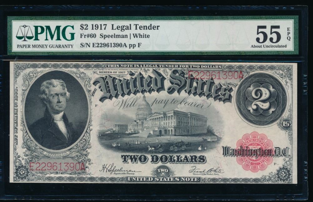 One 1917 $2 Legal Tender Note PMG 55EPQ.