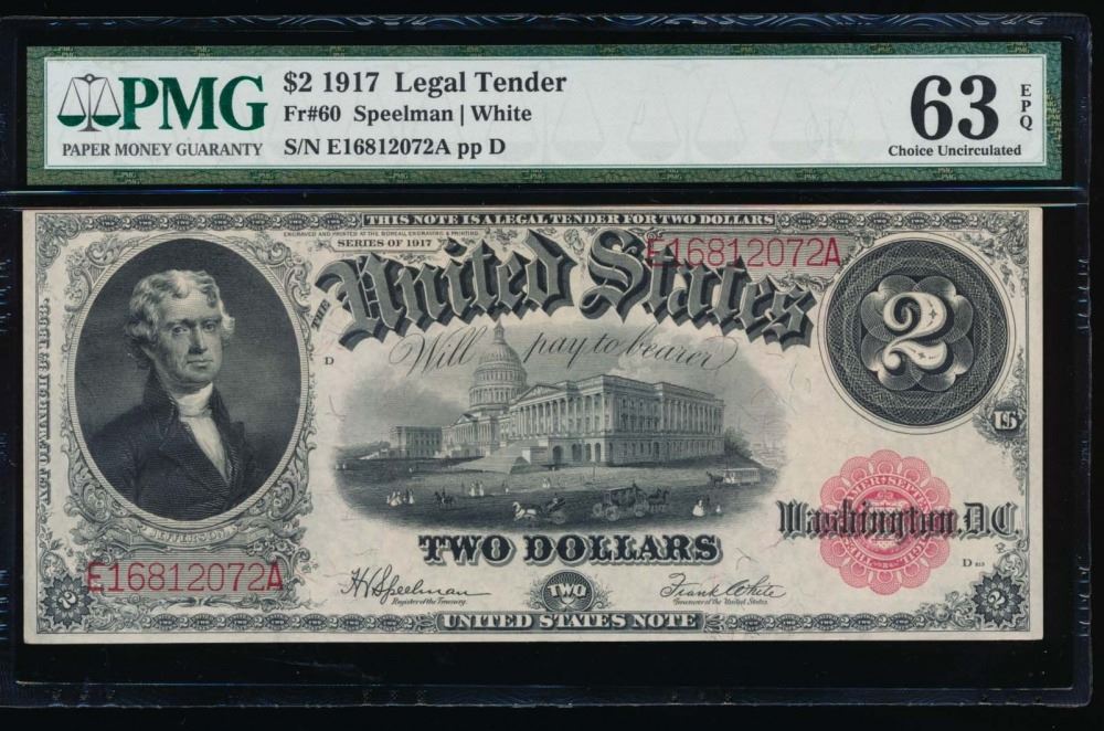 One 1917 $2 Legal Tender Note PMG 63EPQ.