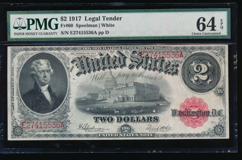 One 1917 $2 Legal Tender Note PMG 64EPQ.