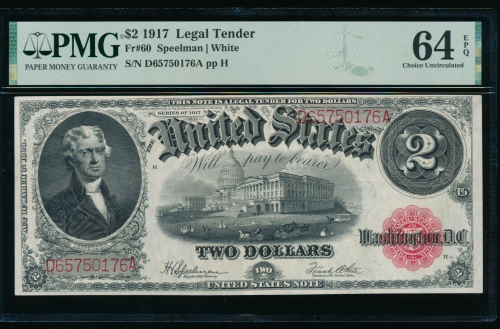 One 1917 $2 Legal Tender Note PMG 64EPQ.