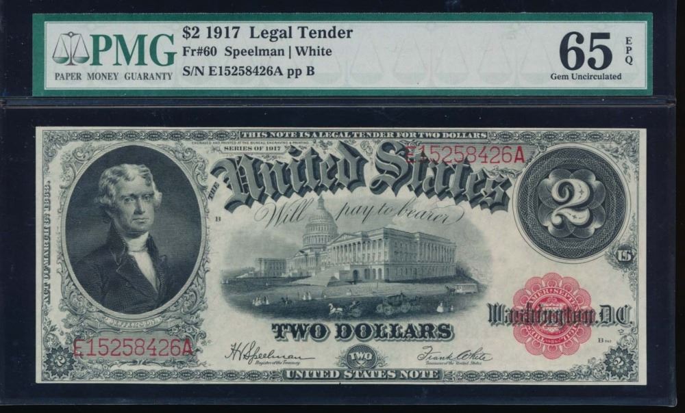 One 1917 $2 Legal Tender Note PMG 65EPQ.