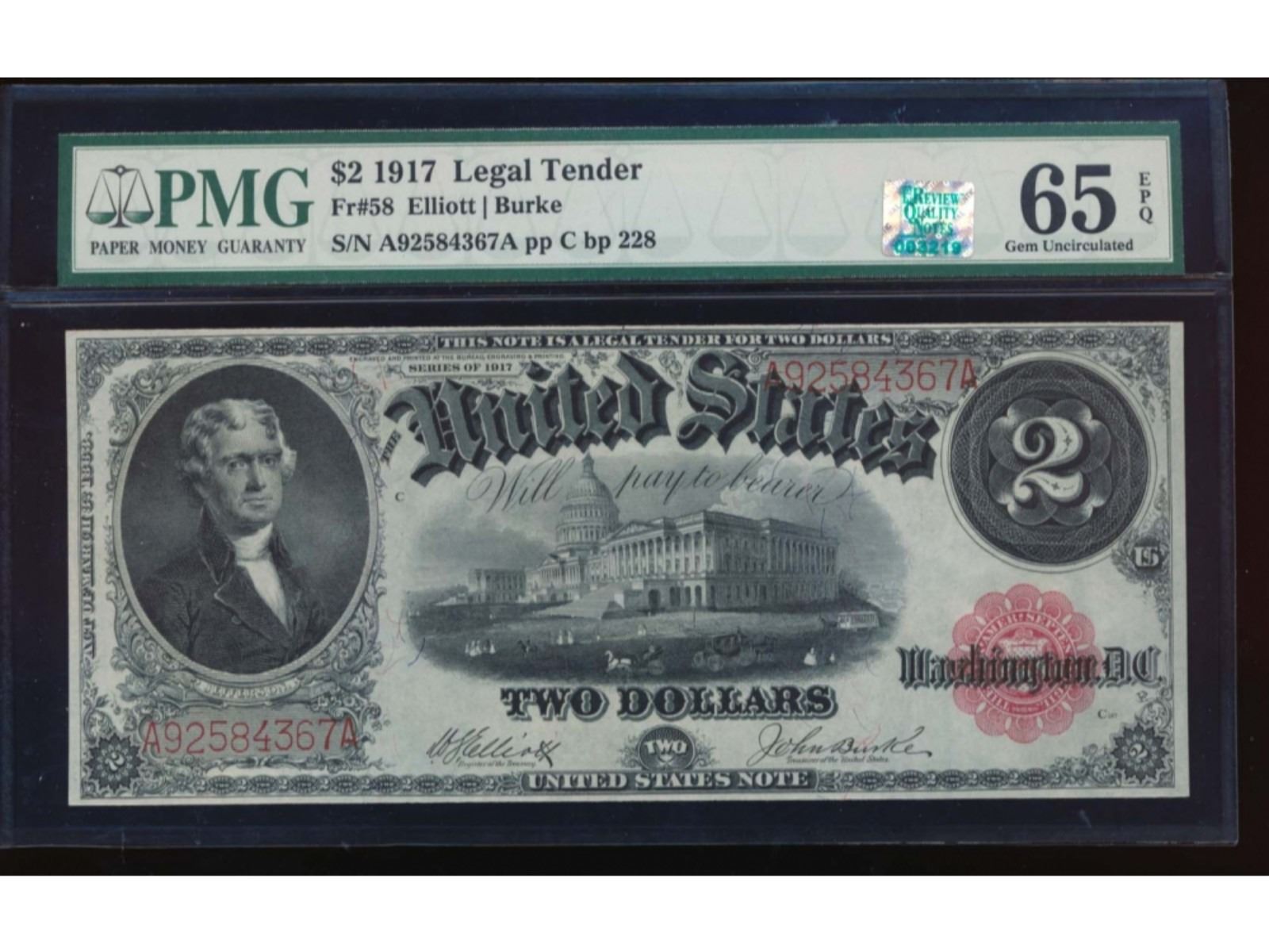 One 1917 $2 Legal Tender Note PMG 65EPQ.