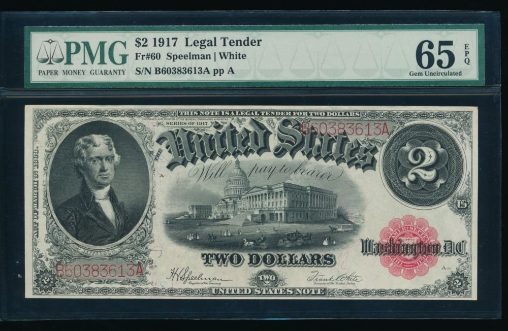 One 1917 $2 Legal Tender Note PMG 65EPQ.