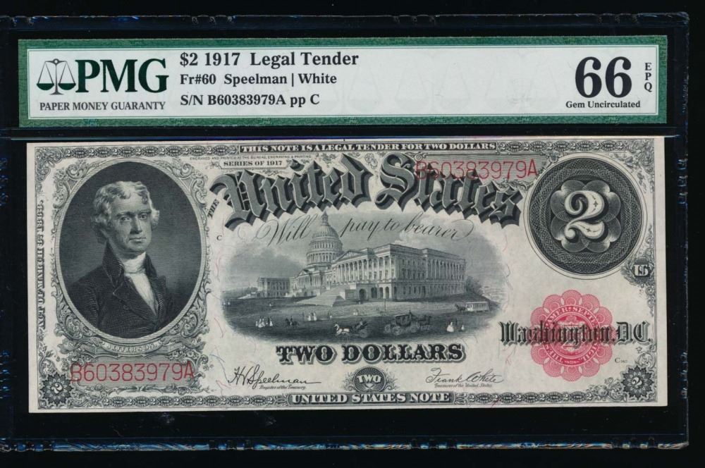 One 1917 $2 Legal Tender Note PMG 66EPQ.