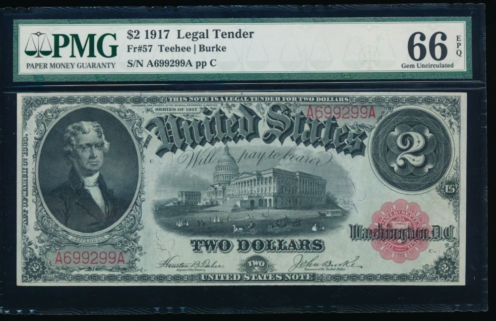 One 1917 $2 Legal Tender Note PMG 66EPQ.