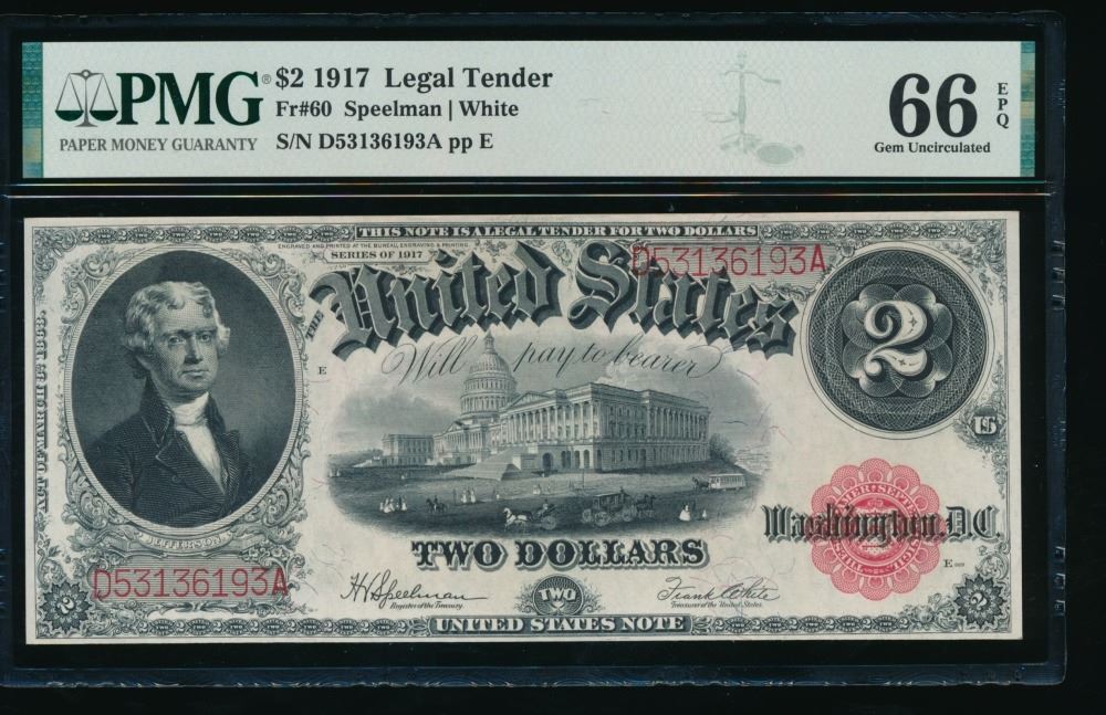 One 1917 $2 Legal Tender Note PMG 66EPQ.