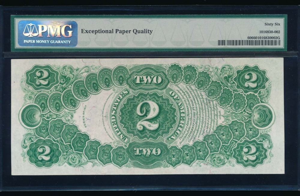 One 1917 $2 Legal Tender Note PMG 66.