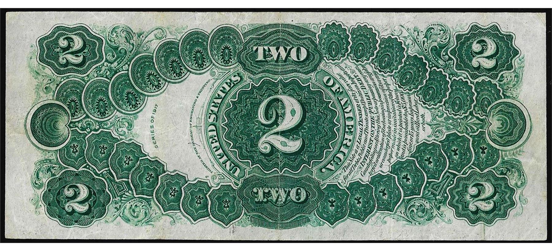 One 1917 $2 Legal Tender Note.