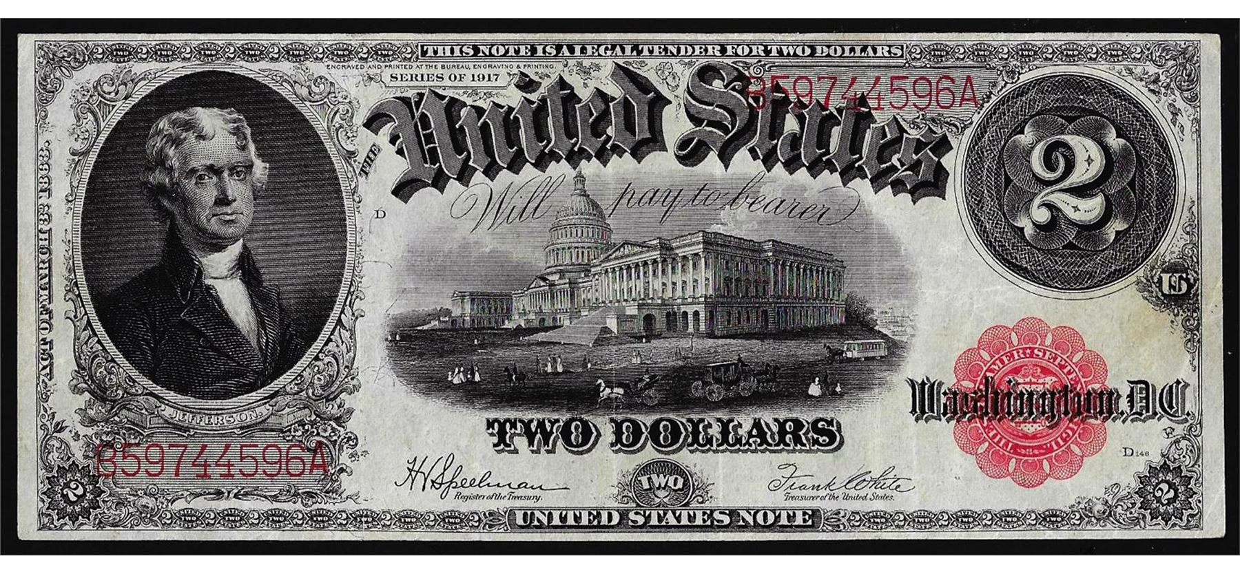 One 1917 $2 Legal Tender Note.