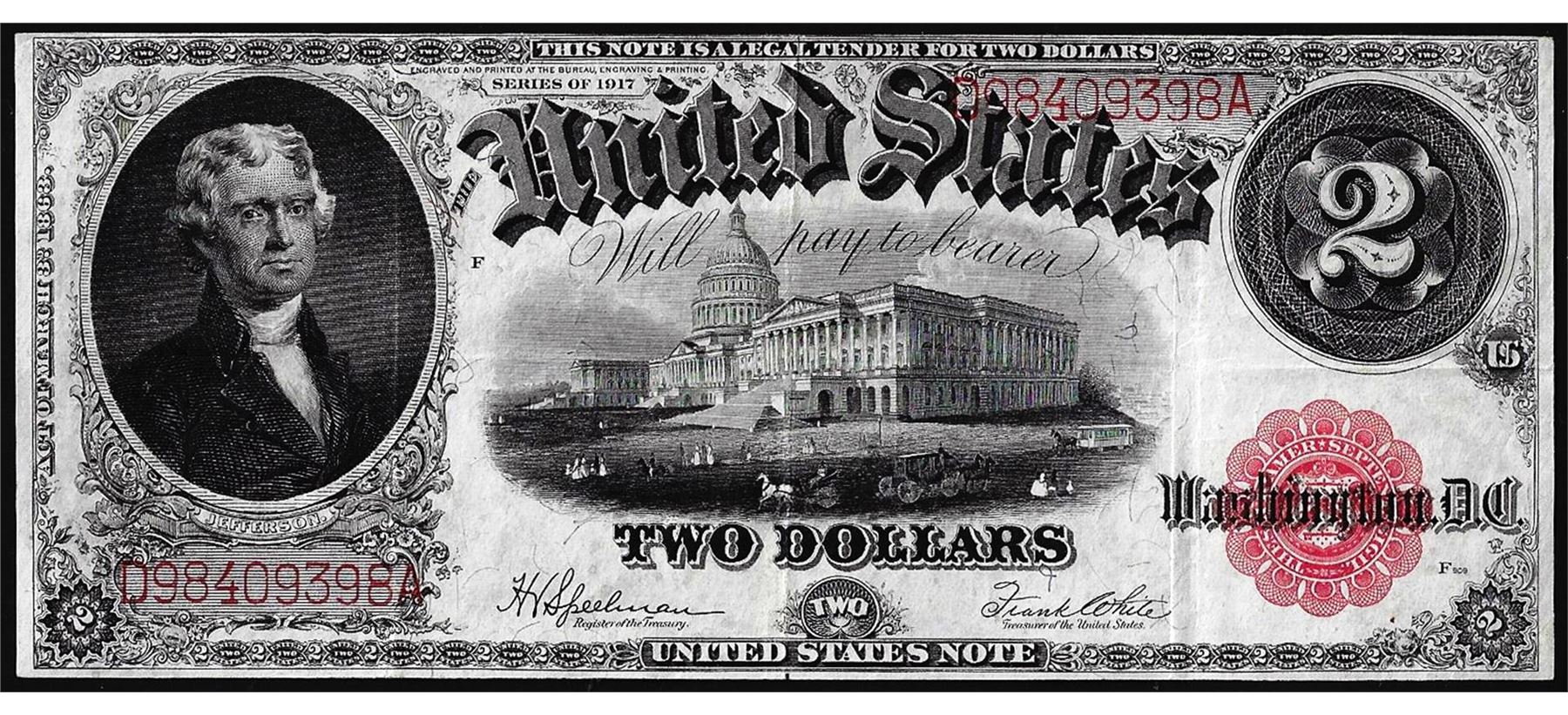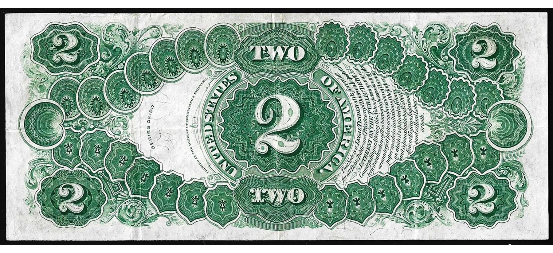 One 1917 $2 Legal Tender Note.