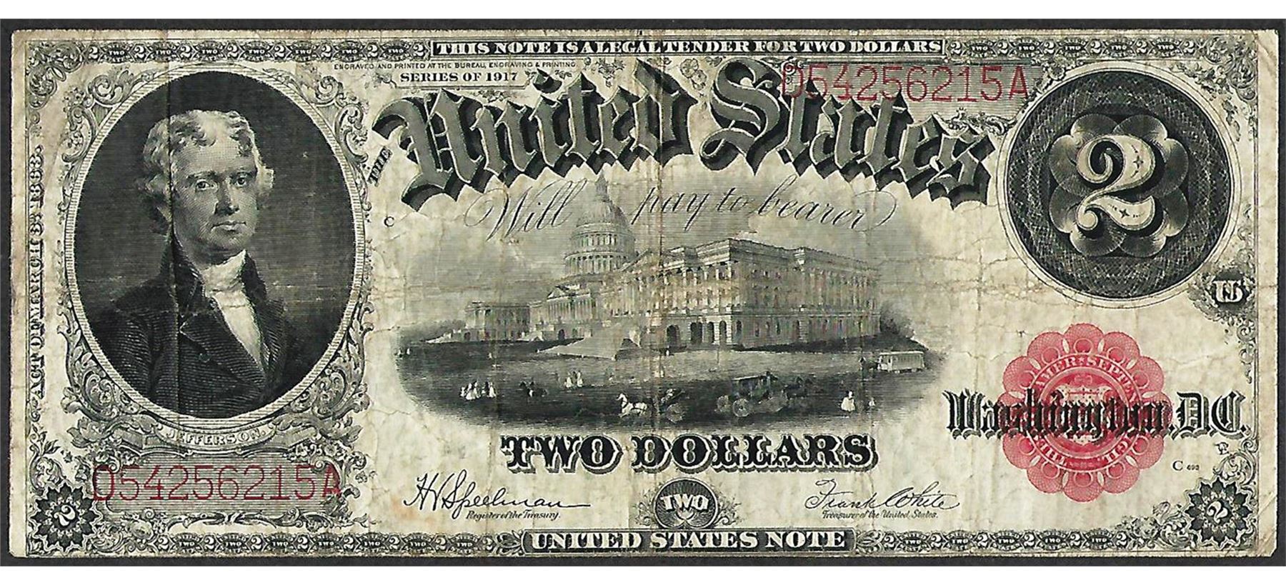 One 1917 $2 Legal Tender Note.