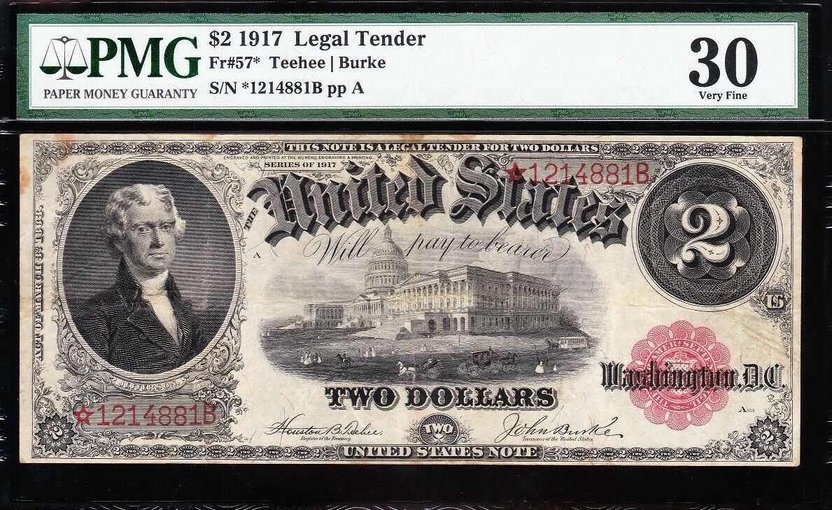 One 1917 $2 STAR Legal Tender Note PMG 30.
