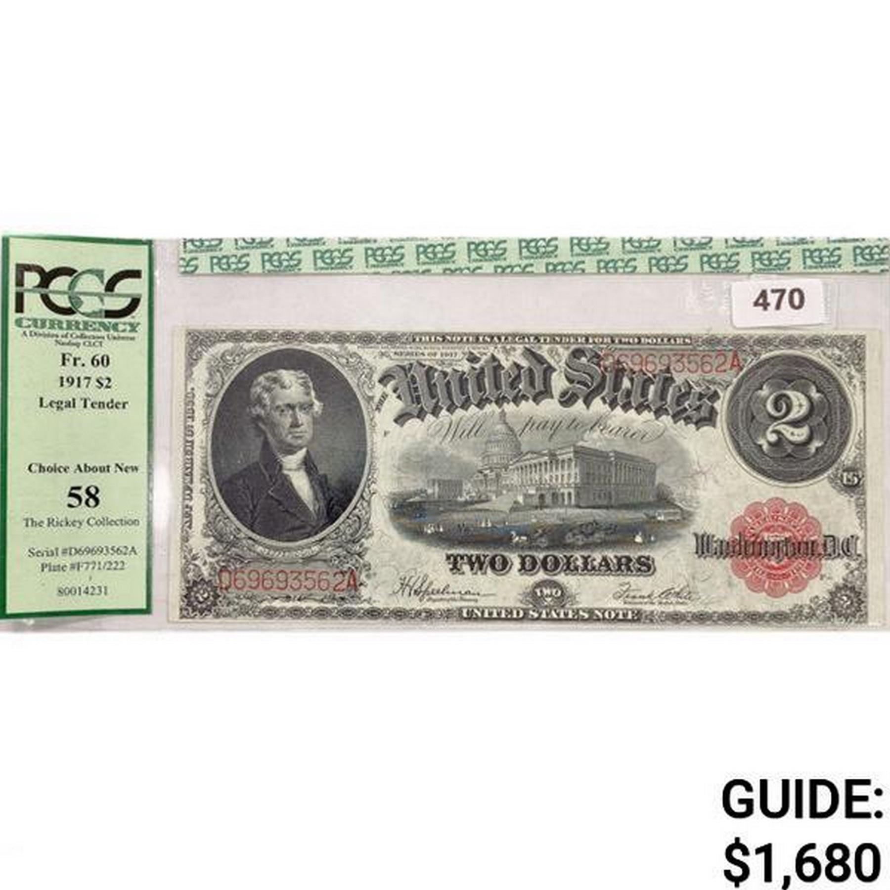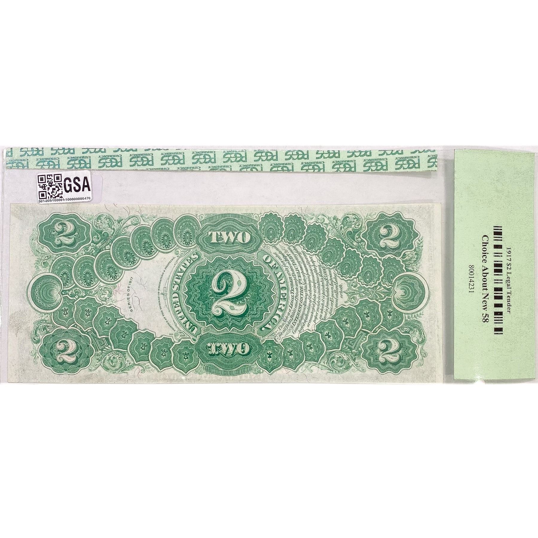 1917 $2 US LG Legal Tender Note PCGS Ch AN58