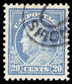 1917, 20¢ Franklin, light ultramarine, perf. 11