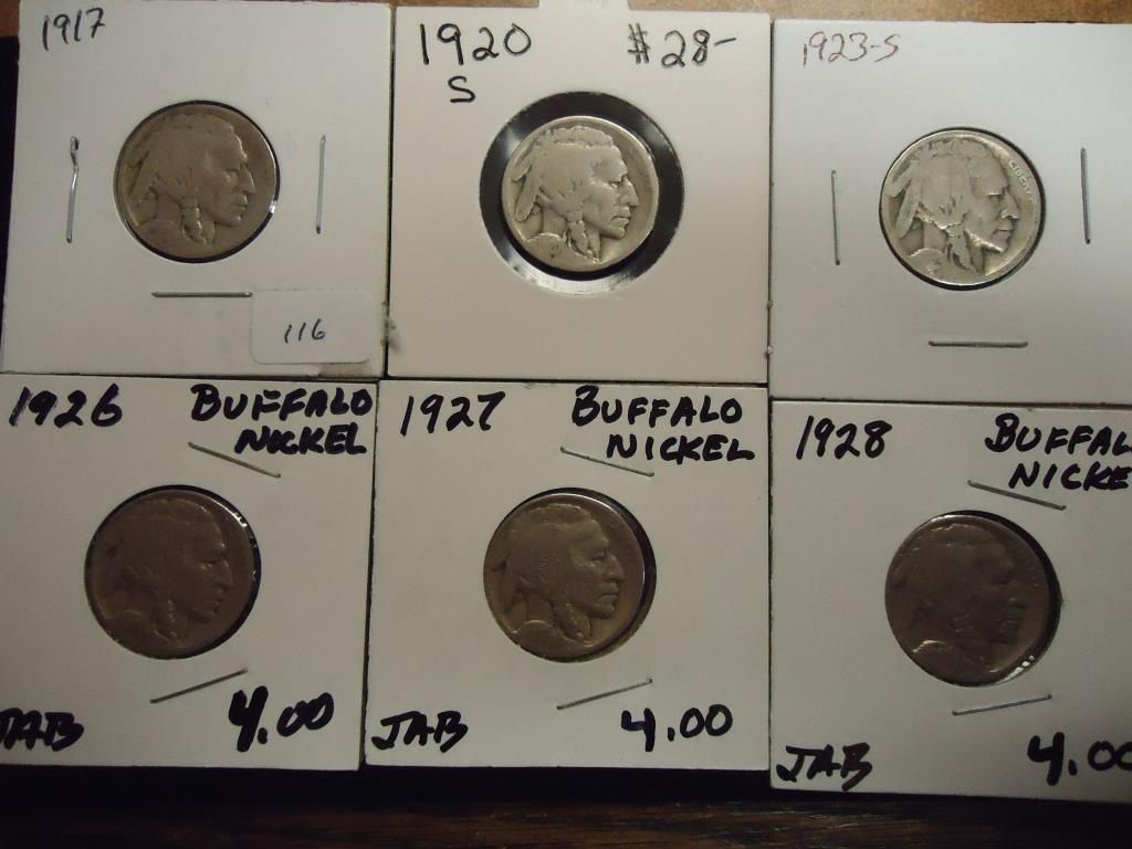 1917,20-S,23-S,26,27 & 28 BUFFALO NICKELS
