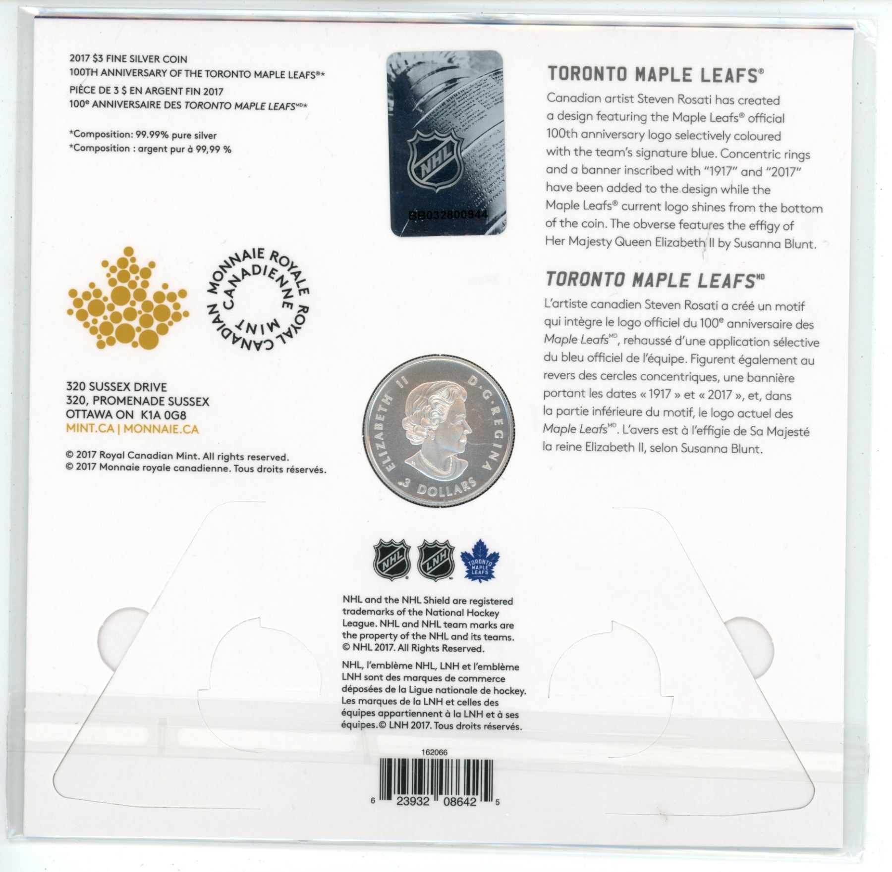 1917 – 2017 Centennial of the Toronto Maple Leafs $3. Colourized. Specimen. Housed in its original RCM folder of issue.