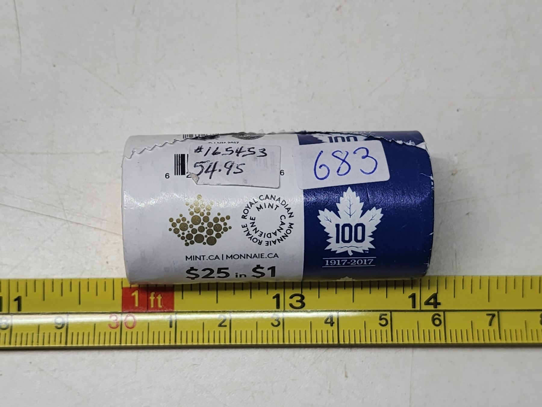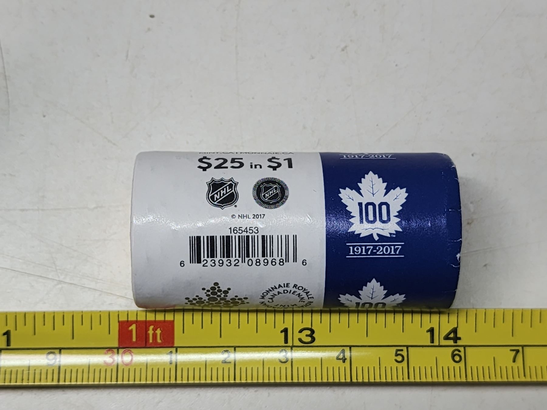 1917-2017 RCM roll of "Toronto Maple Leaf's" Canadian 1 dollar loonie coins - Mint, 25$ worth