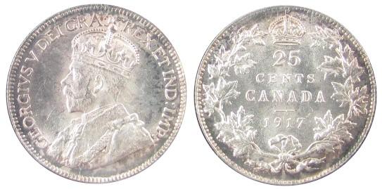1917 25¢ ICCS MS65, lightly toned. Flashy lustre.