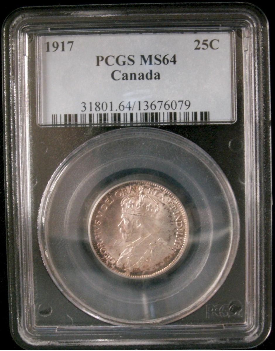 1917 25¢ PCGS MS64. Light tone with strong lustre.