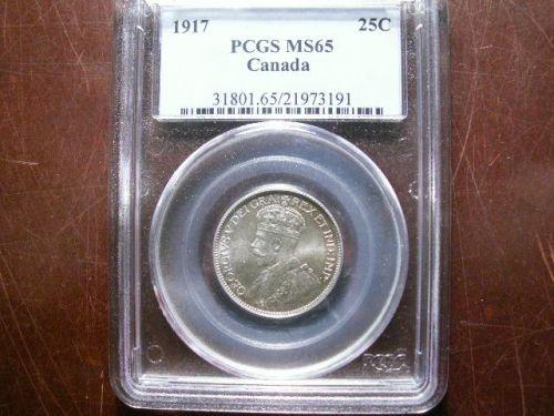 1917 25¢ PCGS MS65. A pristine peice with light golden tone.
