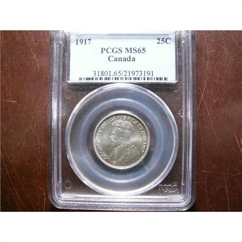 1917 25¢ PCGS MS65. A pristine peice with light golden tone.