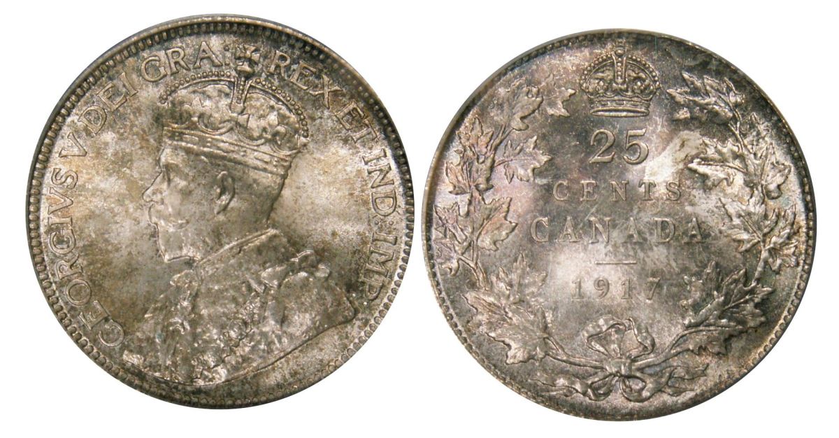 1917 25¢ PCGS MS66. Amazing example with great eye appeal