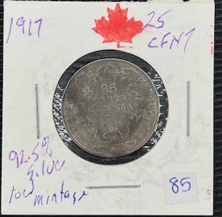 1917 25 cent 92.5 % Silver W.W.I only : 3,365,644 minted look closely at coin part of 2020 recall