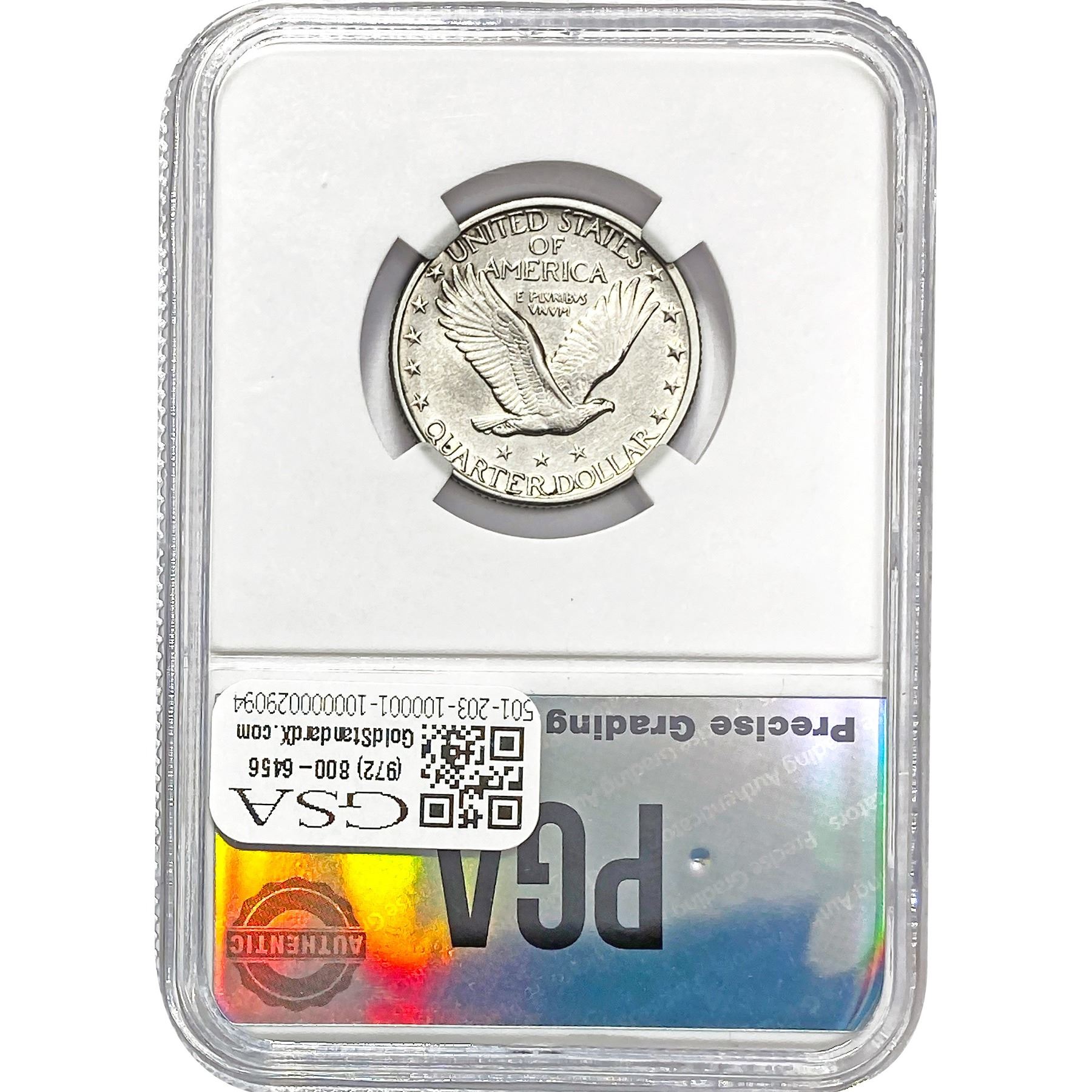 e. Coins sold referencing a third-party grading service are sold “AS IS” without any express or implied warranty, except for a guarantee by GSA that they are genuine. Removal or alteration of the holder, voids all of Bidder’s claims concerning that Product. Certain warranties may be available from the grading services and Bidders are referred to them for further details: Numismatic Guaranty Corporation (NGC), PO Box 4776, Sarasota, FL 34230, www.ngccoin.com/services/writtenguarantee.asp; Professional Coin Grading Services (PCGS), PO Box 9458, Newport Beach, CA 92658, www.pcgs.com/guarantee.html; ANACS, 6555 S. Kenton St., Ste. 303, Englewood, CO 80111; and Independent Coin Grading Co. (ICG), 7901 East Bellview, Ave., Suite 50, Englewood, CO 80111.