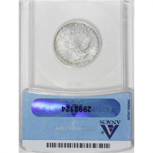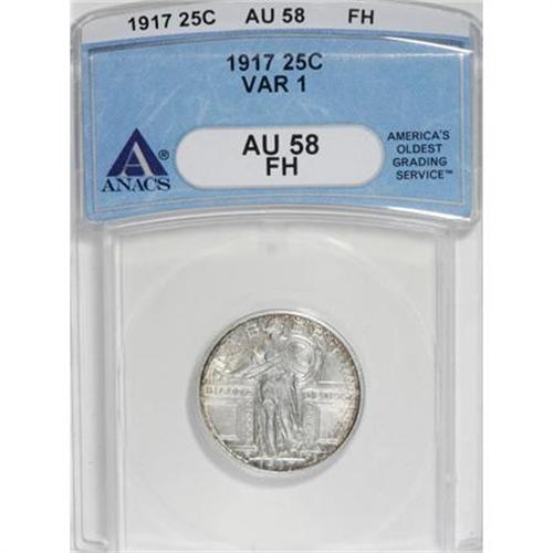 <B>1917 25C Type One AU58 Full Head ANACS.</B></I> NGC Census: (195/2774). PCGS Population (329/3748). Mintage: 8,740,000. Numismedia Wsl. Price for NGC/PCGS coin in AU58: $161. (#5707)<BR><BR><B>Coin Engraver:</B> Hermon A. MacNeil<BR><BR><b>Shipping:</b> Coins & Currency (<a target="_blank" href="http://www.heritageauctions.com/common/shipping.php">view shipping information</a>)