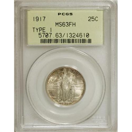 <B>1917 25C Type One MS63 Full Head PCGS.</B></I> PCGS Population (872/2510). NGC Census: (462/1933). Mintage: 8,740,000. Numismedia Wsl. Price for NGC/PCGS coin in MS63: $288. (#5707)<BR><BR><B>Coin Engraver:</B> Hermon A. MacNeil<BR><BR><b>Shipping:</b> Coins & Currency (<a target="_blank" href="http://www.heritageauctions.com/common/shipping.php">view shipping information</a>)